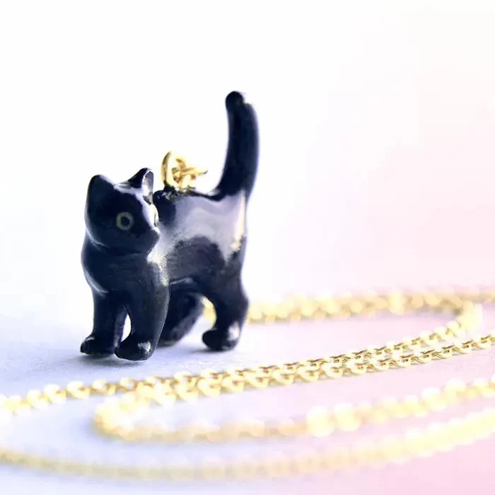 Defy superstitions and embrace enchantment with our Black Cat Necklace. Hand-painted in the deep hues of an inky night sky, this porcelain pendant breaks the mold of fabled misfortune, offering only good vibes and magical allure. Due to the handmade nature of this product, slight variations in color and design may occur, making each piece truly one-of-a-kind. Perfect for cat lovers and those who revel in the mystical.