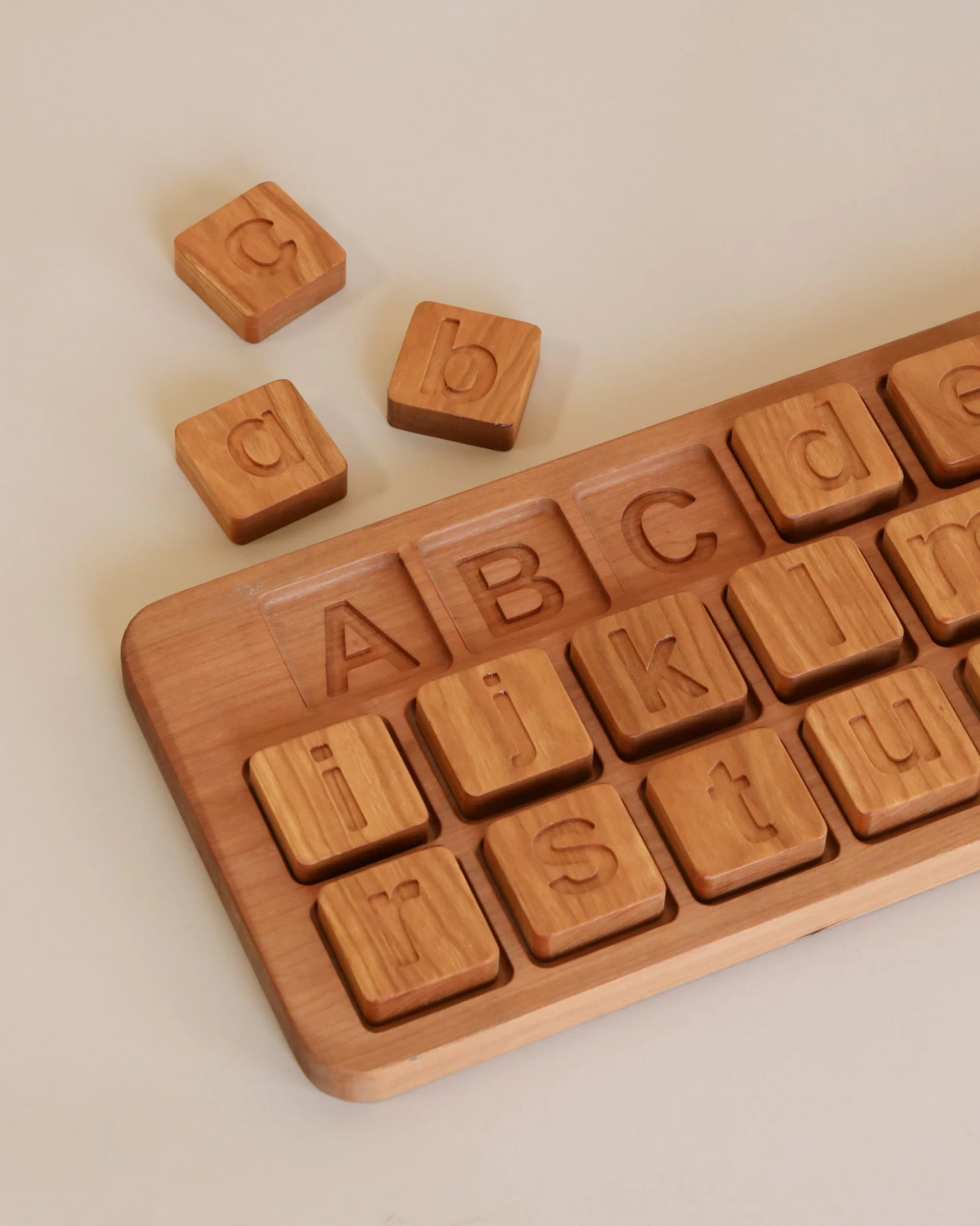 This Montessori inspired puzzle helps little ones match lower case letter to upper case ones.