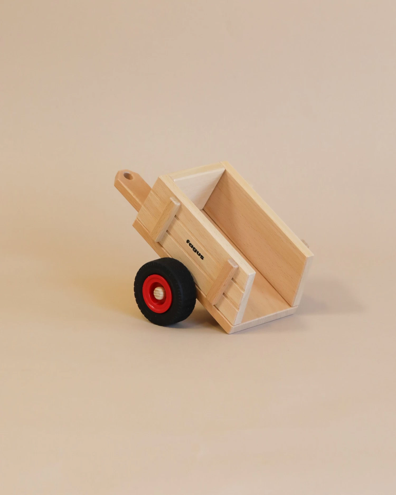 A reliable cart to haul hay, dirt, or any other farm essentials! Easily attach this Farm Cart to tractors, trucks, or other Fagus vehicles with a hitch. The sturdy structure and real rubber tires make it resistant to wear and tear from driving and construction activities. The wooden toys are handcrafted in a workshop for the disabled using beechwood, with interlocking, doweled, and glued connections. No nails, screws, or staples are used.Â