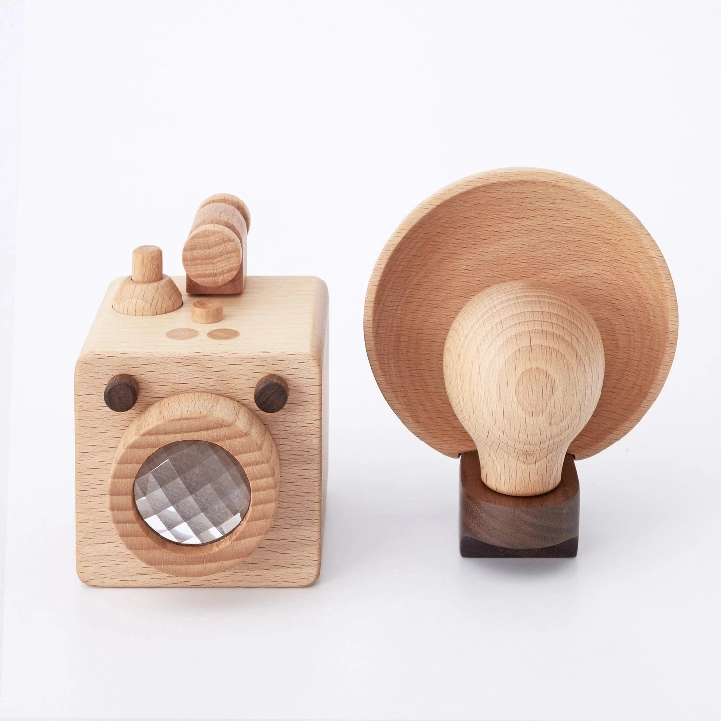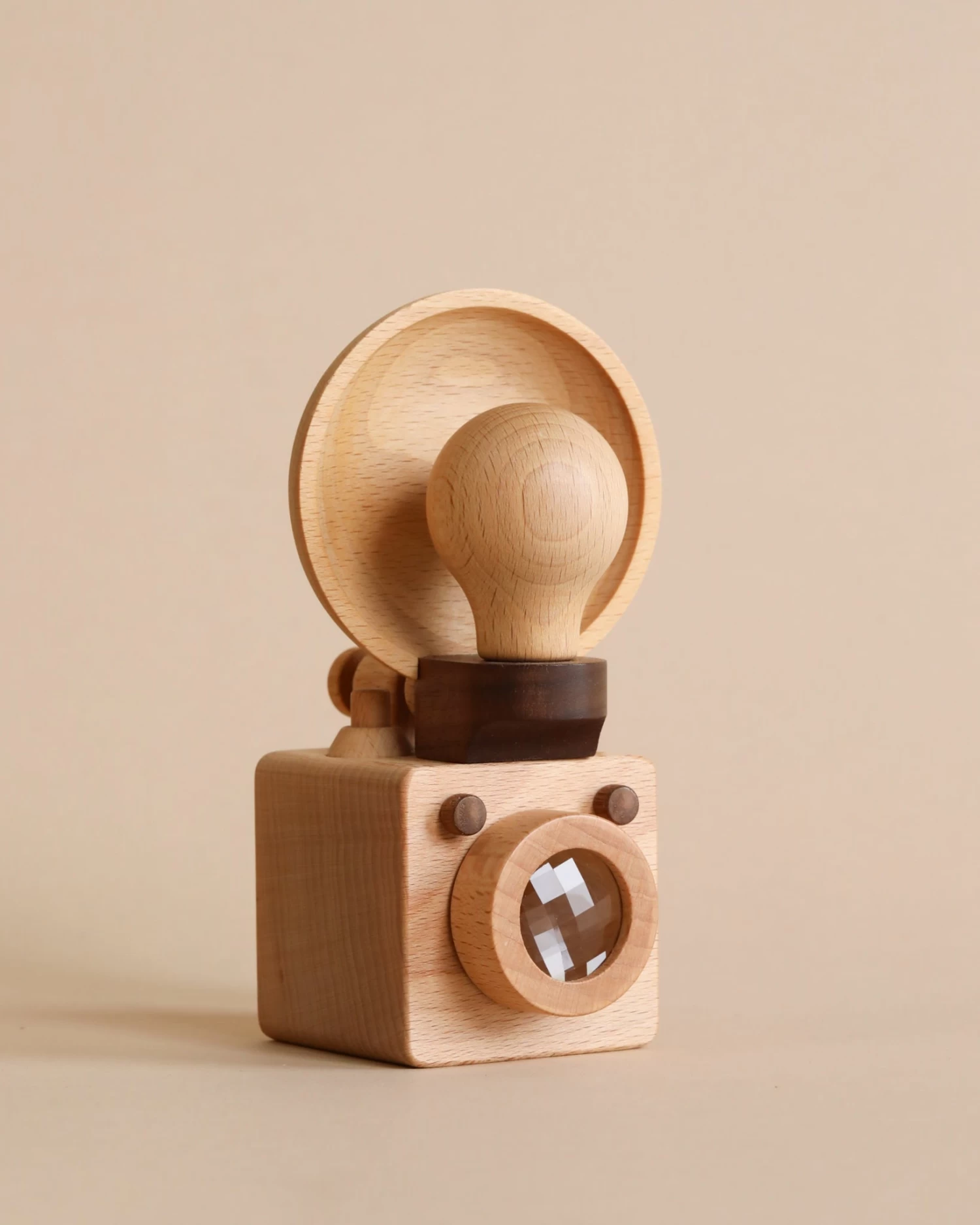 This wooden camera is expertly crafted with beechwood and includes a removable wood light bulb and flash reflector – a true keep-sake piece in your family