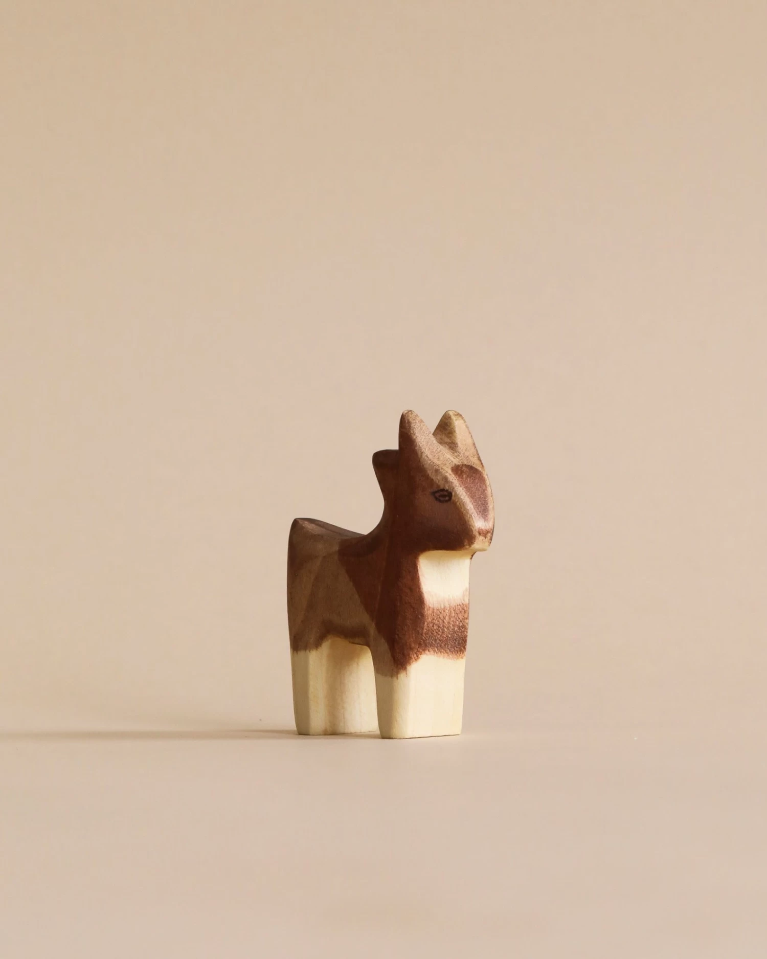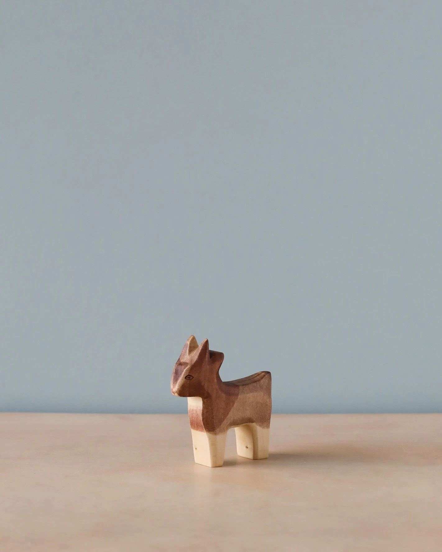 The beautiful figures are made by a small business in the country Georgia, which has been producing high-quality and educationally valuable wooden toys since 1997. With much love and dedication, toys that capture the soul of animals and people have been produced there for over 35 years. Only local woods of the highest quality are used. The edges are rounded and finely sanded in several steps so that they are pleasant and soft to the touch. Finally, they are painted with natural dyes (Biofa) and finally polished with high-quality oil. The workshop is located in a small community with fair pay and a good and friendly working atmosphere. This is how sustainable toys are created that are loved and passed on from generation to generation. Each toy is simple enough to inspire imaginative play, but accurate enough to be realistic. In this way, children’s sense of beauty and imagination is encouraged.