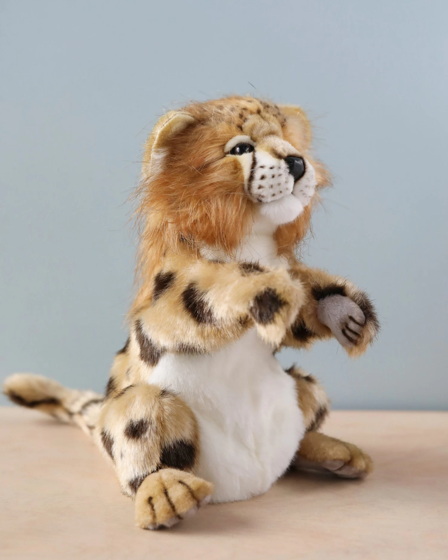 Artisans hand sew the animals “inside out”, an old world tradition that results in the mininization of seams, and their bodies are carefully “sculpted” to create “musculature” and “features” like movement in a walking or sitting position that are unique to each creature. On average, there are 42 separate pieces required to make each animal, that must be combined by a team of truly creative artists to create the distinctly realistic features that characterize HANSA animals. (Some animals have as many as 240 different parts!) Each animal is individually hand sewn, to give it a unique “personality”, there are more than 860 different fabrics and man-made furs from which the “coat” and “hides” are made, along with over 6000 sets of different eyes, whiskers, claws, noses, and related accessories allocated for creating these wonderful plush animals. Stuffing emphasizes careful attention to the placement of the highest quality man-made materials.