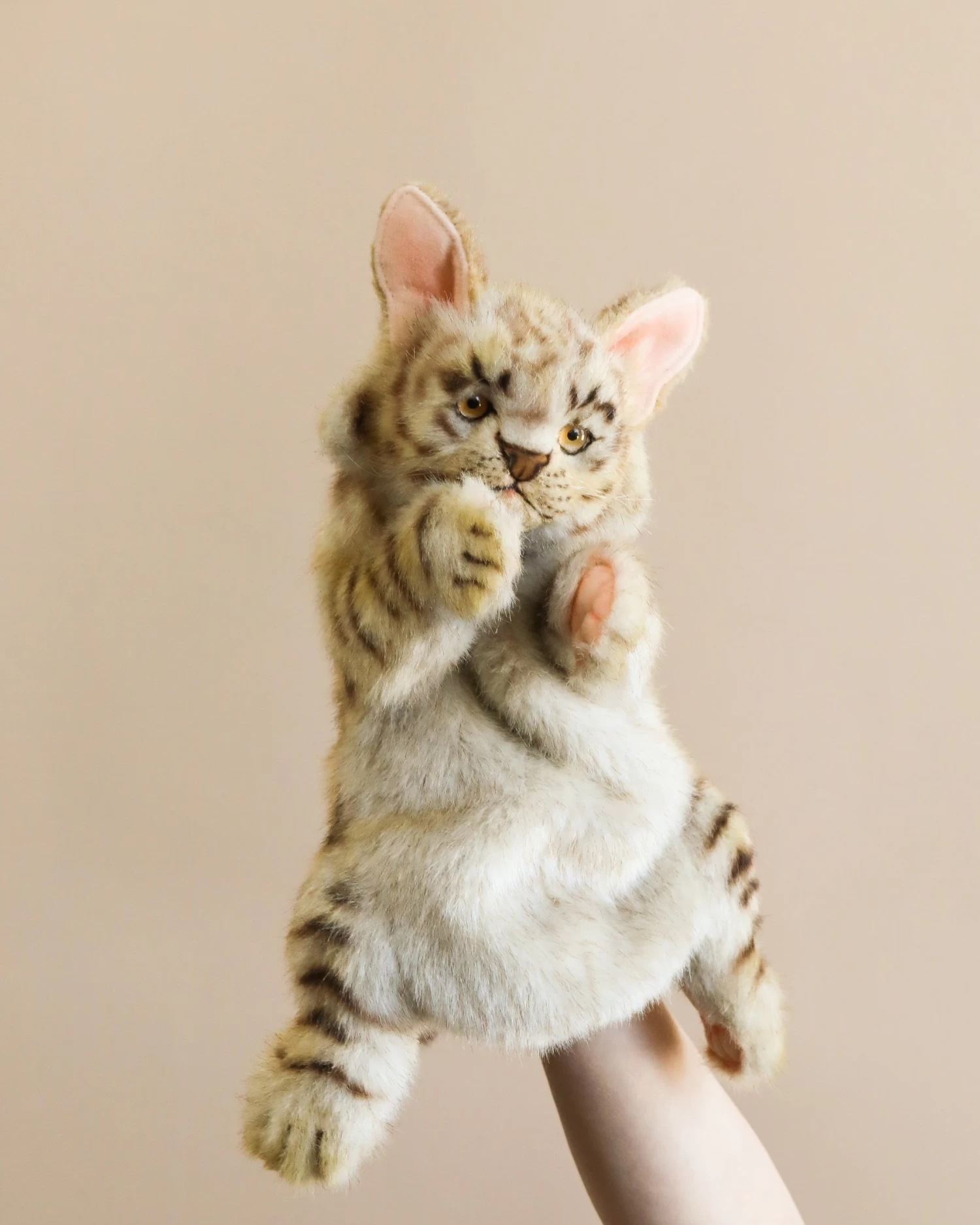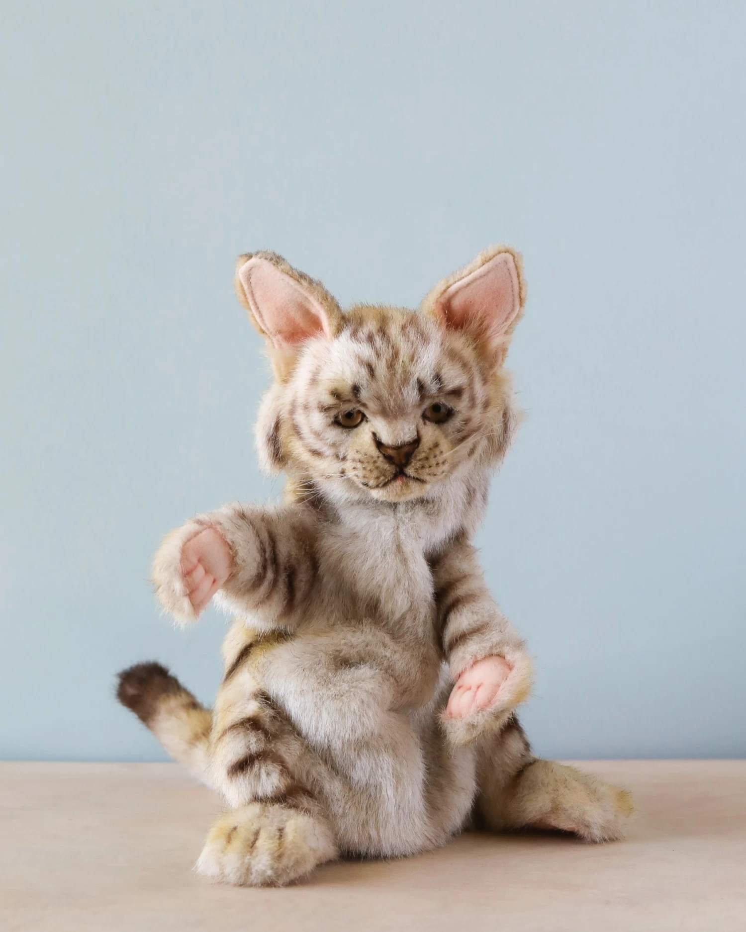 Artisans hand sew the animals “inside out”, an old world tradition that results in the mininization of seams, and their bodies are carefully “sculpted” to create “musculature” and “features” like movement in a walking or sitting position that are unique to each creature. On average, there are 42 separate pieces required to make each animal, that must be combined by a team of truly creative artists to create the distinctly realistic features that characterize HANSA animals. (Some animals have as many as 240 different parts!) Each animal is individually hand sewn, to give it a unique “personality”, there are more than 860 different fabrics and man-made furs from which the “coat” and “hides” are made, along with over 6000 sets of different eyes, whiskers, claws, noses, and related accessories allocated for creating these wonderful plush animals. Stuffing emphasizes careful attention to the placement of the highest quality man-made materials.