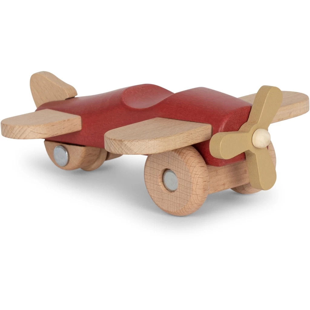 Airplane toy made with beechwood and non-toxic paint. Features movable wheels and propeller.