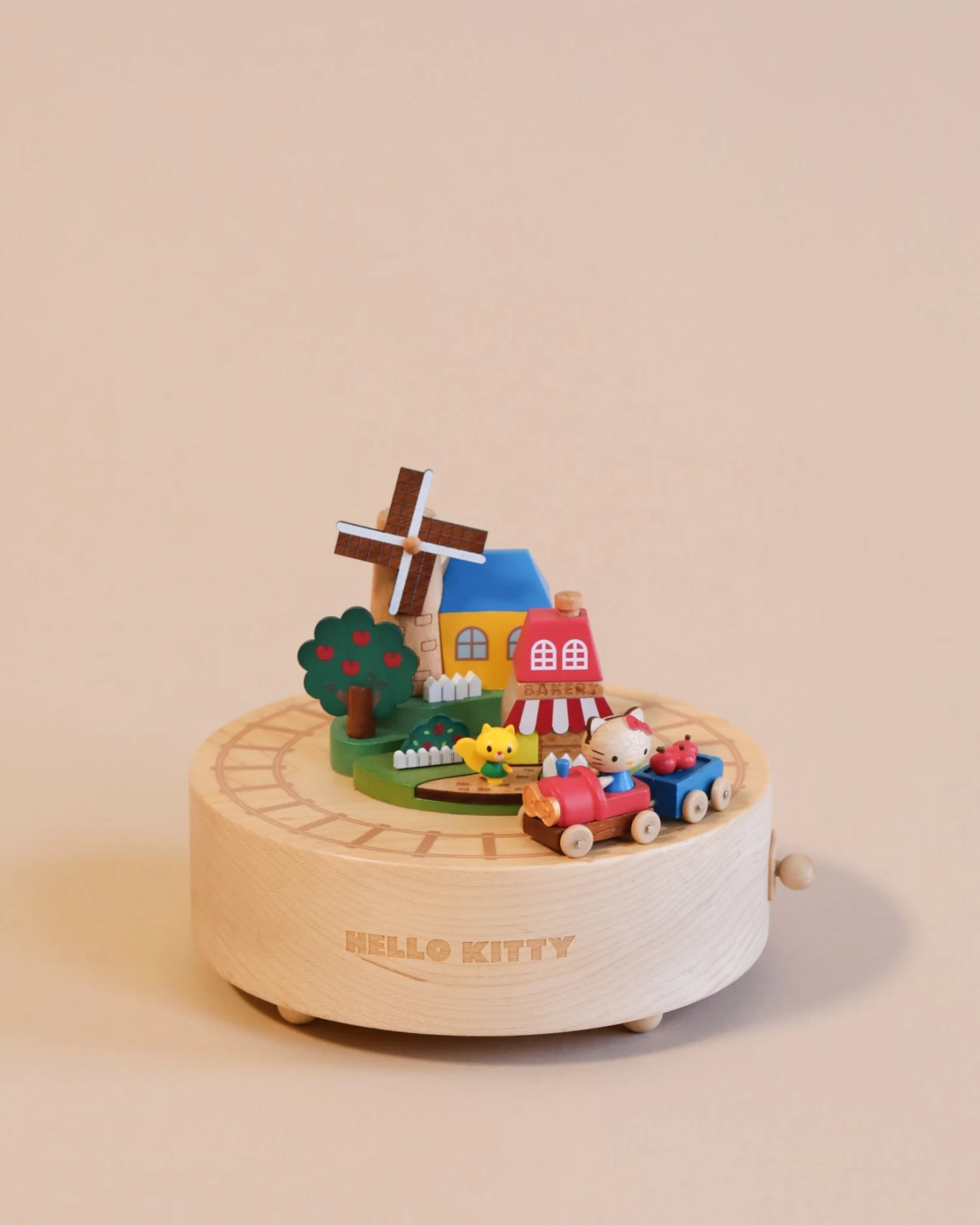 Combining nostalgia and a classic design, this hand cranked music box makes a great addition to any any room as a decoration on a shelf. The on/off toggle allows the music to start and turn off easily, while wind-up mechanism rotes the music box around.Â