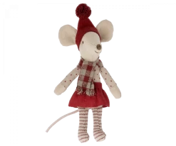A sweet and adorable small friend, nicely dressed up for Christmas. The mouse fits perfectly into the Gingerbread house.