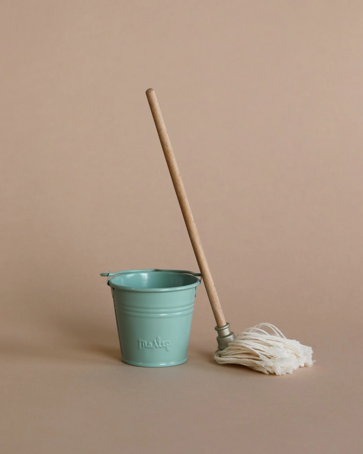 Maileg buddies need a bucket and mop to clean up those messes they make. This bucket and mop is perfect for MINI sized Maileg friends.