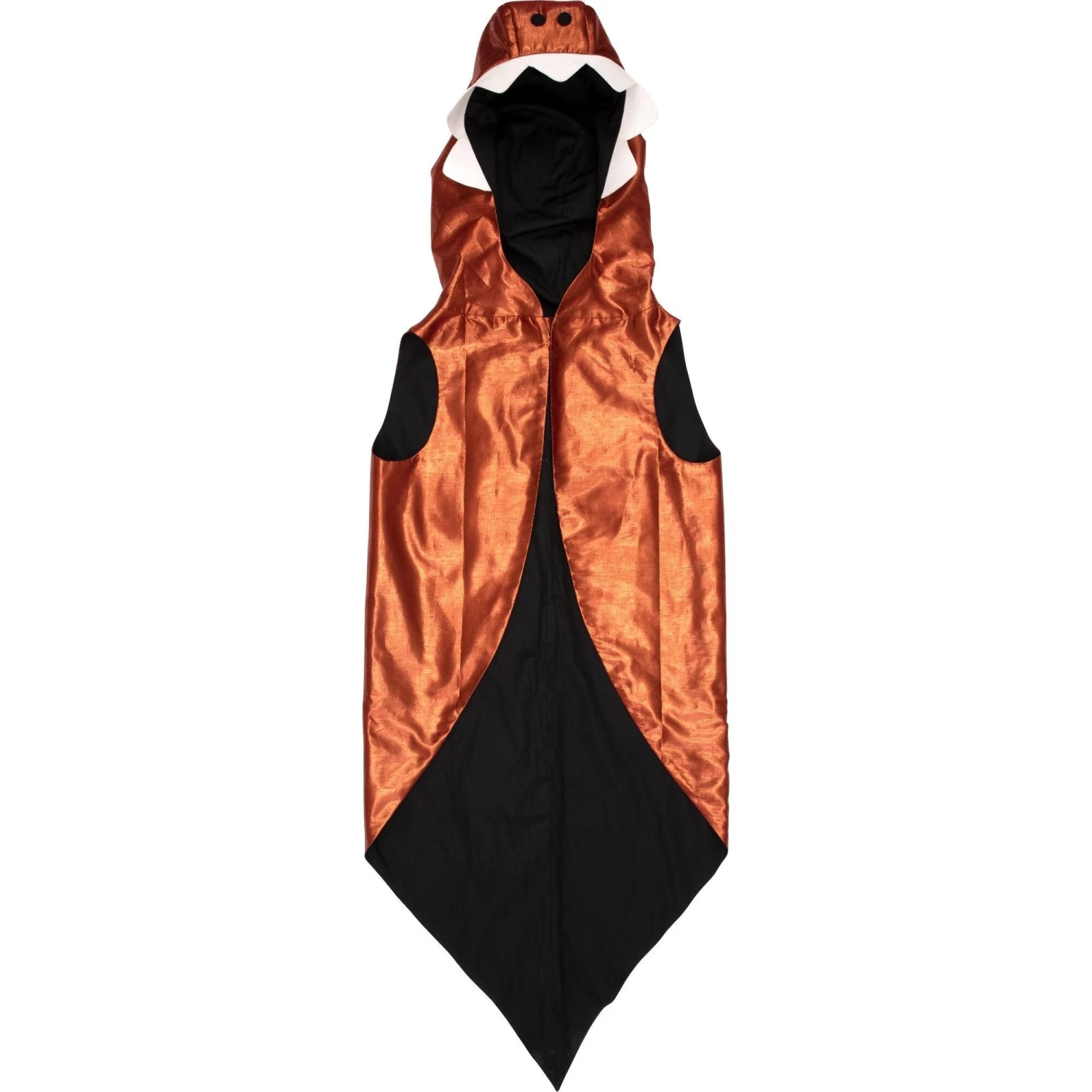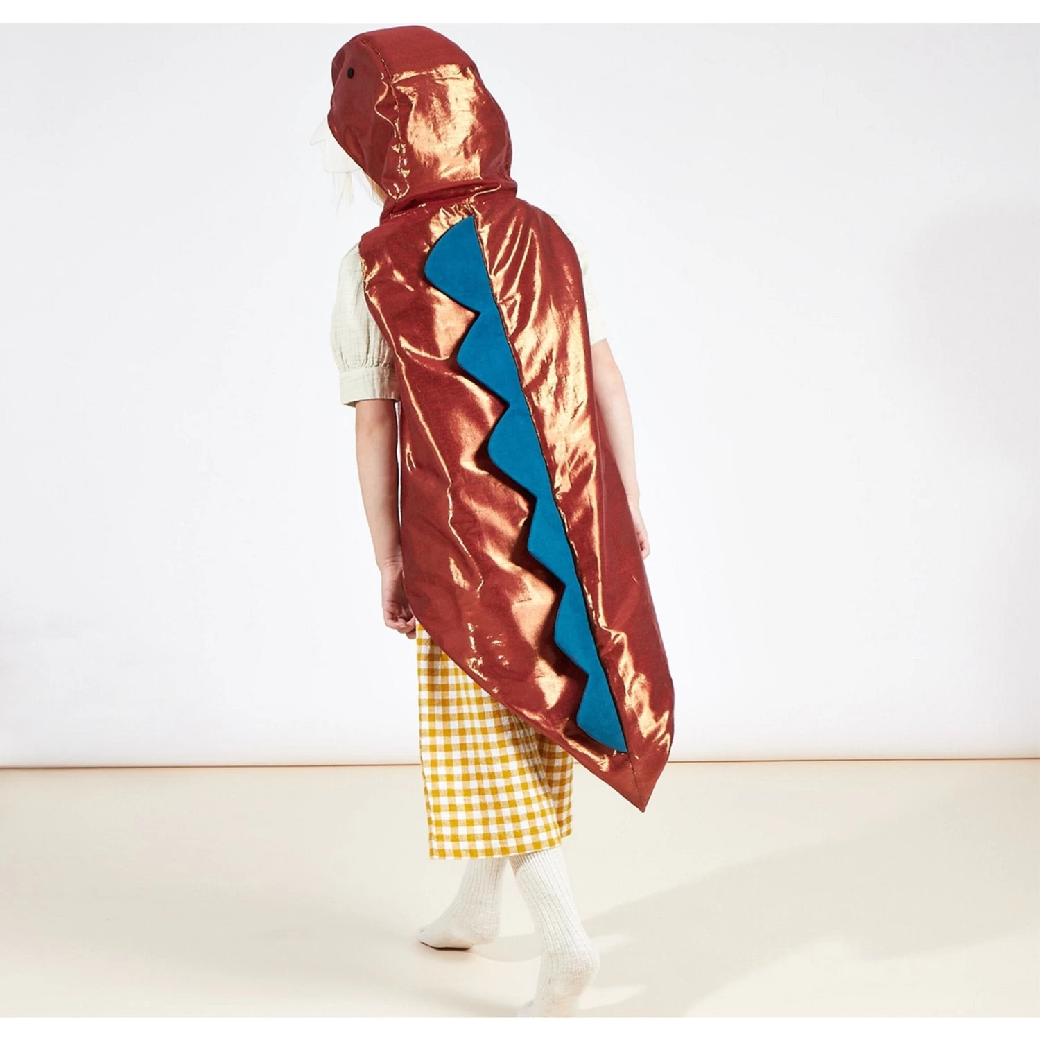 Little dino lovers will adore this Dinosaur Dress Up set! It makes a fantastic gift and and an excellent addition to a dress up box. The hooded jacket is crafted from red and copper lame. It has felt facial details and spikes sewn on the back. Perfect for lots of roaring good fun!