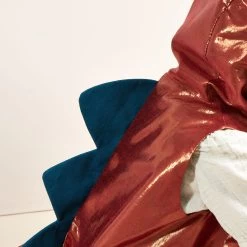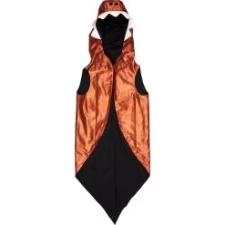 - The hooded cape is crafted from red and copper lame, and lined with black polycotton