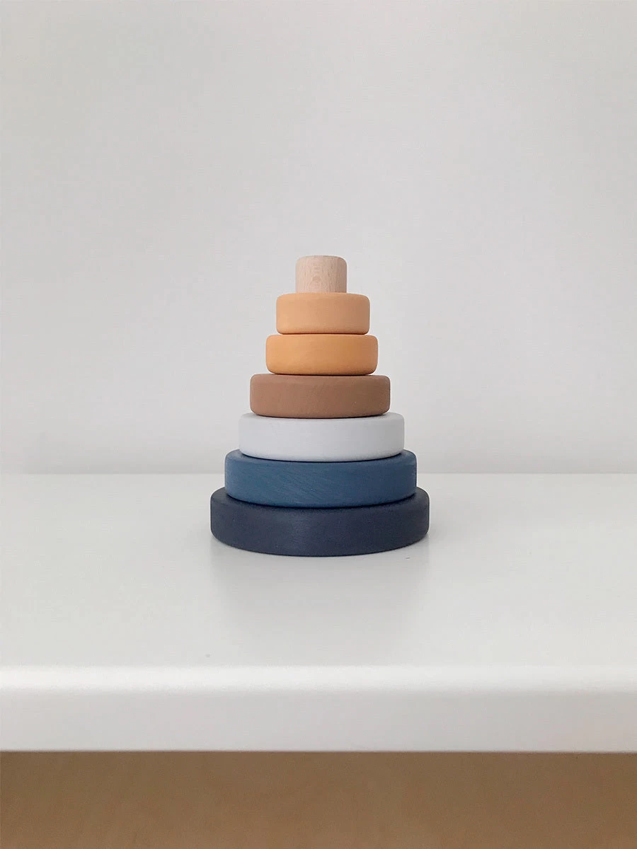 Handmade by Sabo Concept in Ukraine and painted with non-toxic, water-based paint. This stacking toy is great for hand-eye coordination.Â