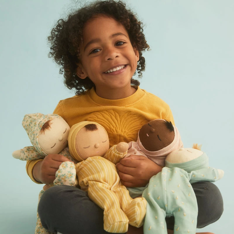 This limited-edition Daydream Dozy is made from 100% Cotton printed in our vintage inspired Goldie, print. Soft and precious, Pip Goldie is made for cuddles and play and can’t wait to snooze the days away with you! Pip Goldie is posable, made from super soft cotton and features the sweetest embroidered face with a little tuft of hair. Each Daydream Dozy Dinkum wears a non-removable suit complete with a rainbow right over their heart.