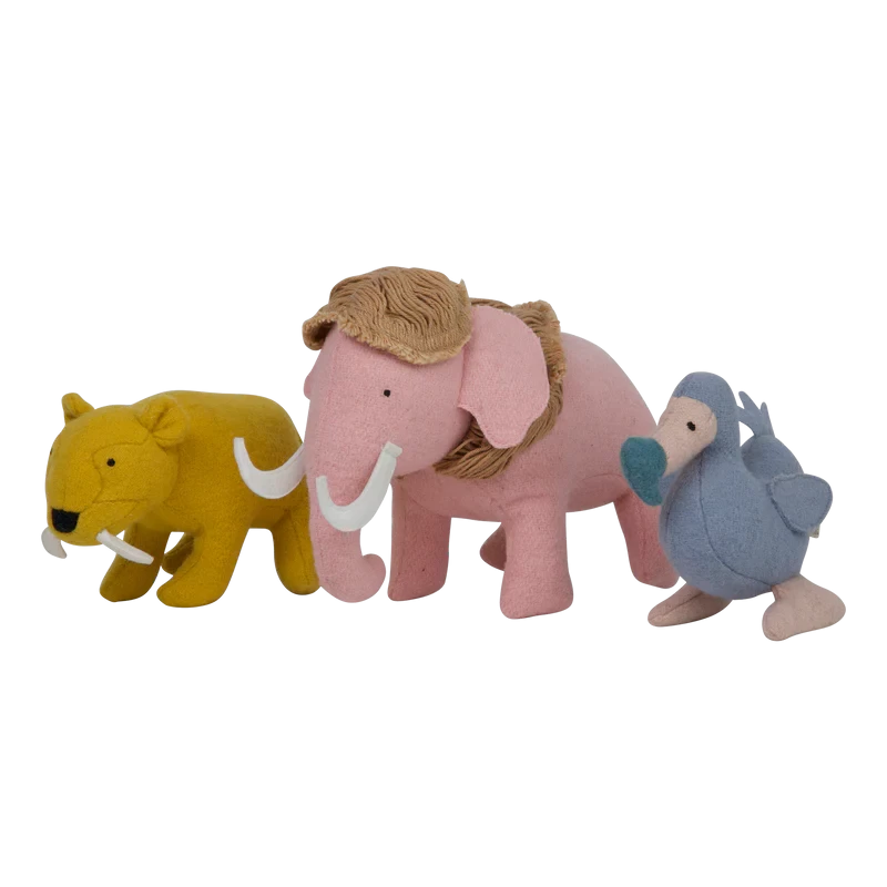 Handmade from a soft wool blend with embroidered features, these Extinct Animal pals are the perfect size for small hands and are wonderful prompts for hours of imaginative play.