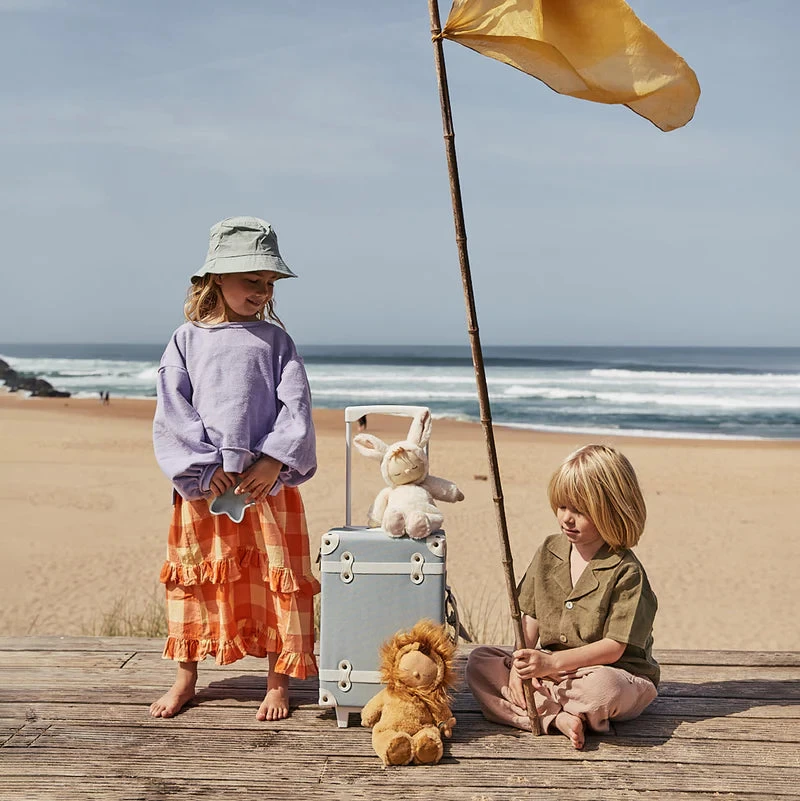 Conveniently carry-on sized, the See-Ya Suitcase stacks away neatly in a playroom or under a bed. A retractable handle and wheels make it easy for kiddos aged 3-6 to pull and play. Mix and match with this matching wash bag for the complete travel set.