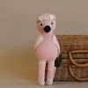 This knitted dinosaur toy is made from tactile organic cotton. Soft grey with raised teal spots and mustard spikes.
