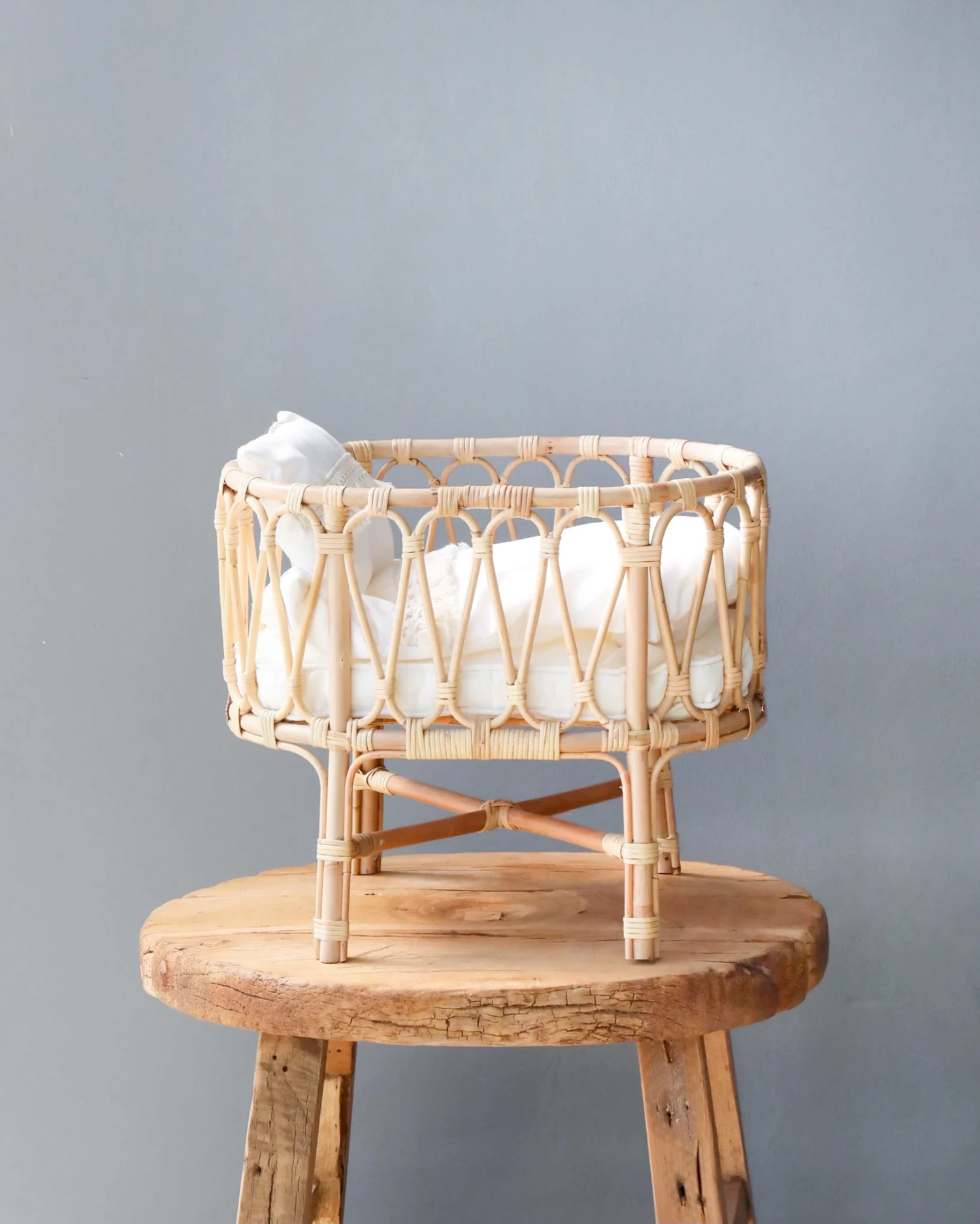 This rattan toy bassinet is perfect for dollies and stuffed animals.