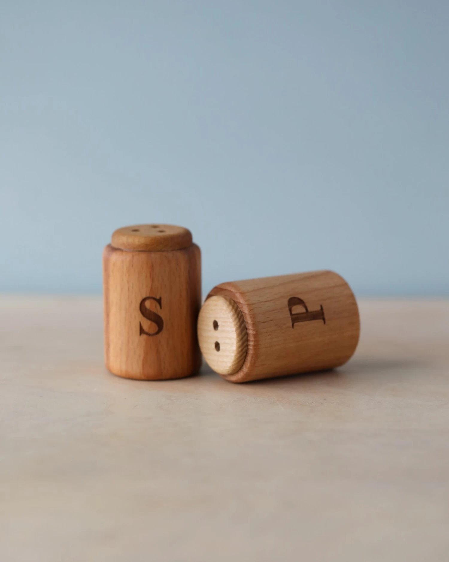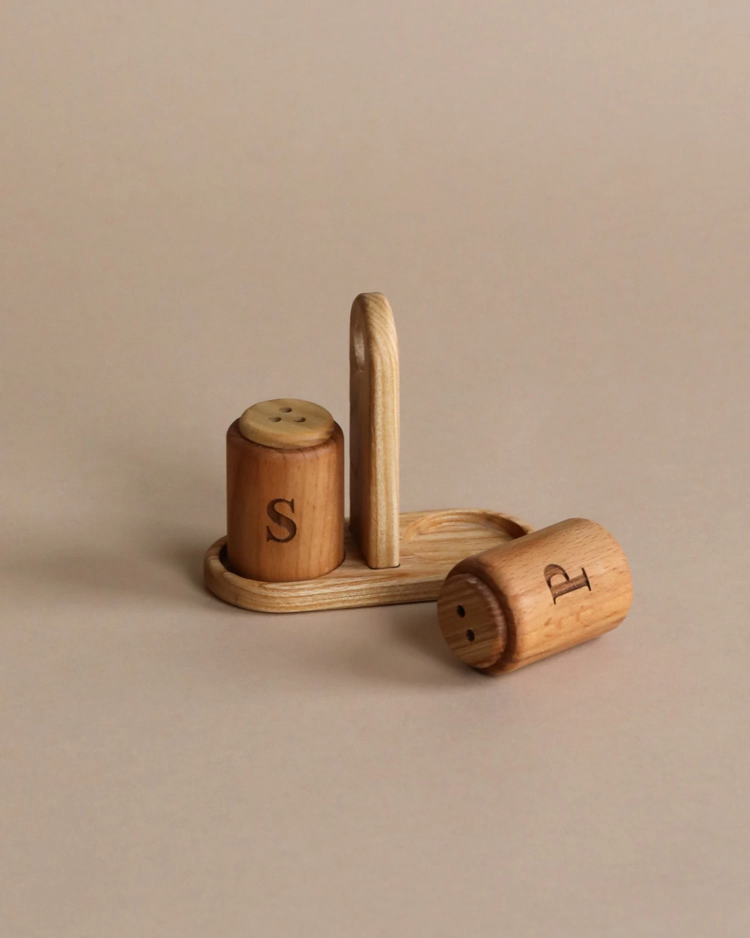 Handmade from ash wood, this salt and pepper shaker will make a rattling noise when you shake them!Â