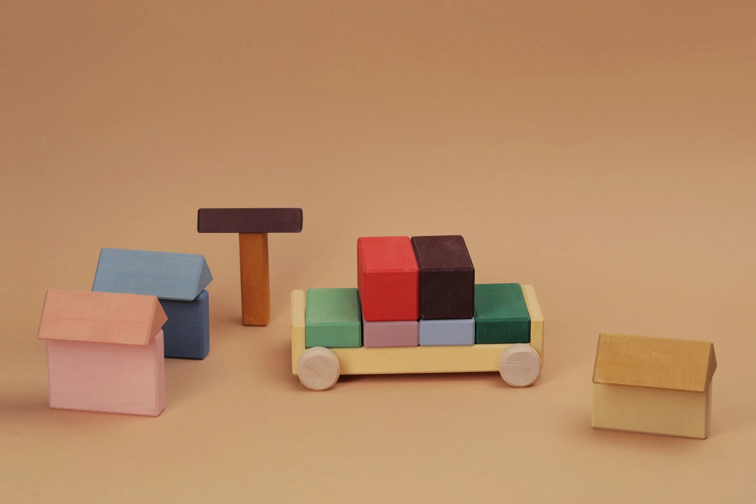 The Vehicle Blocks is made of solid wood. The wheels are coated with linseed oil, the rest of the parts are painted with eco-friendly water-based paint.