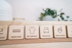 Morning tiles – breakfast, bathroom, clean teeth, get dressed, brush hair, sunscreen, shoes on, snack, wash hands, lunch