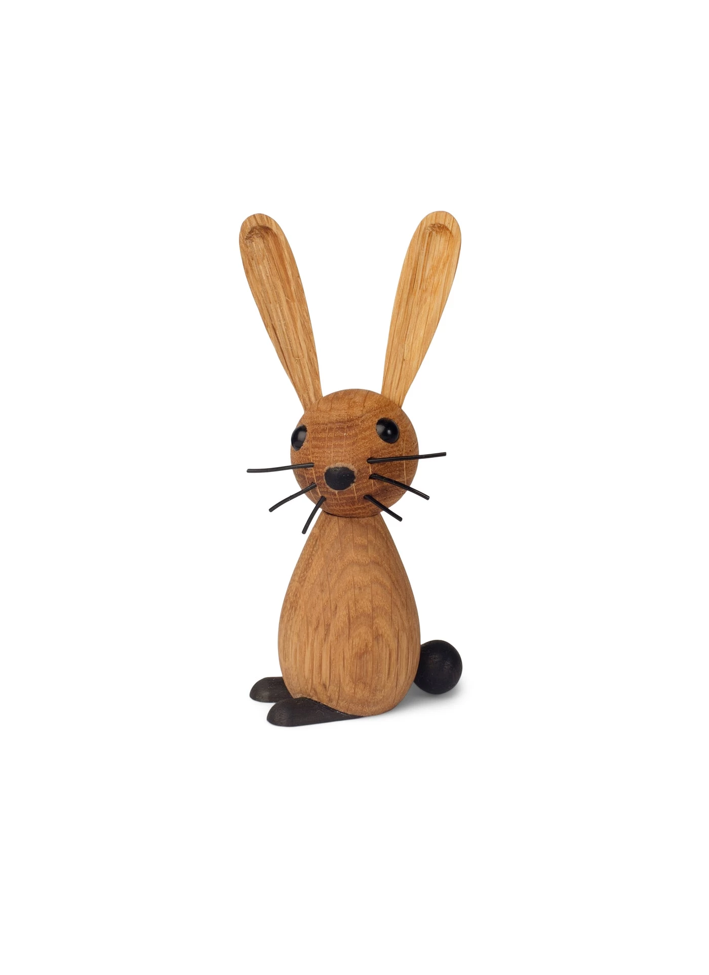 Mini Jumper is a cute hare that brings a spring vibe into your home – all year round. This little version of our big hare, Jumper, has a gentle and curious expression and you can turn his head so that he can look around. Mini Jumper is handmade of pure oak and with details in smoked oak.