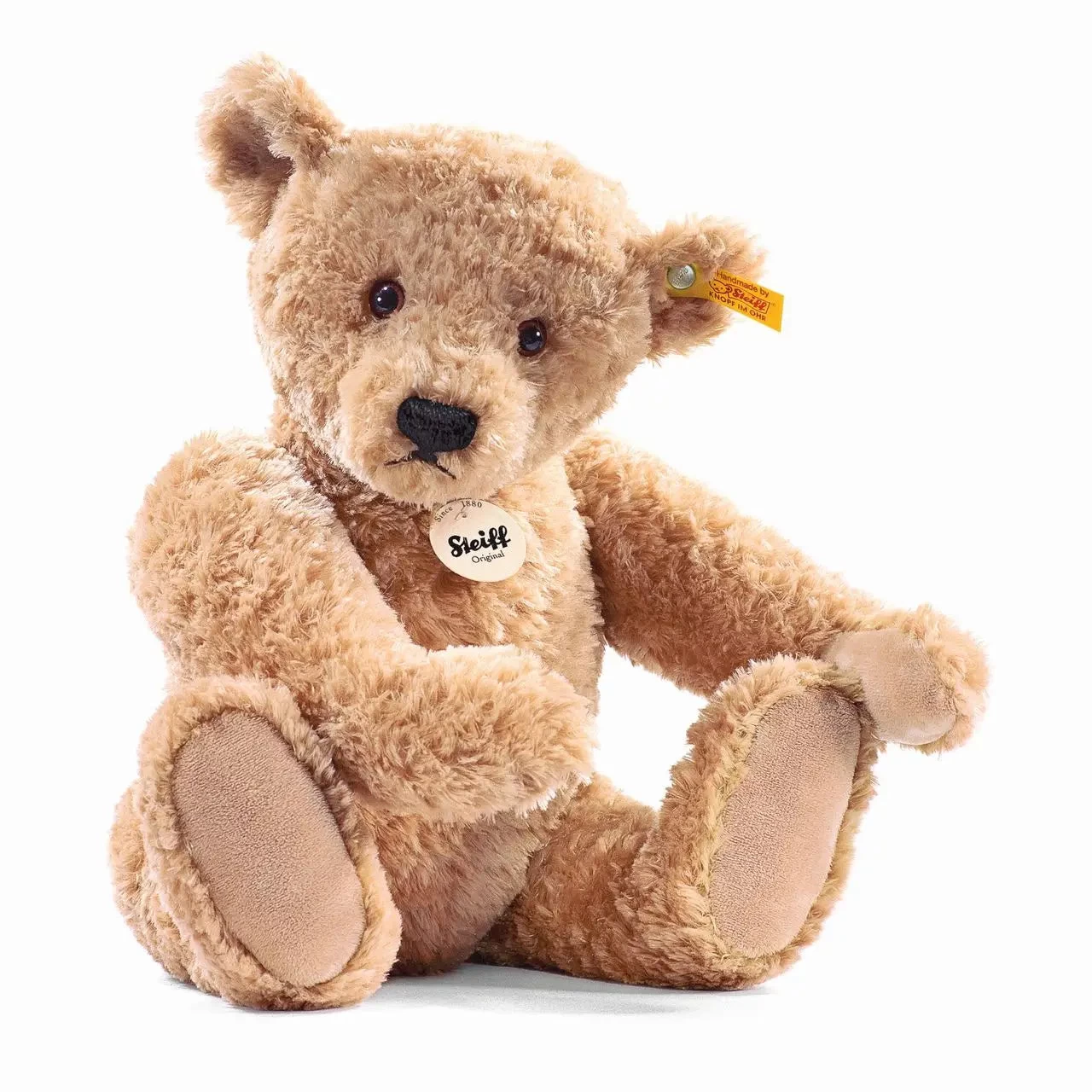 Presenting the ultimate, traditionally styled Teddy bear from the company that invented this classic toy more than a century ago. Elmar is the epitome of what a Teddy bear should be. His design is timeless, while his cuddly coat and loose stuffing are contemporary touches that make him just right for today’s child. He’s lovingly handmade from premium-grade materials by Steiff’s skilled artisans. Elmar proudly wears the world famous “Button in Ear” trademark, symbol of highest quality. From the company that invented the Teddy bear in 1902.