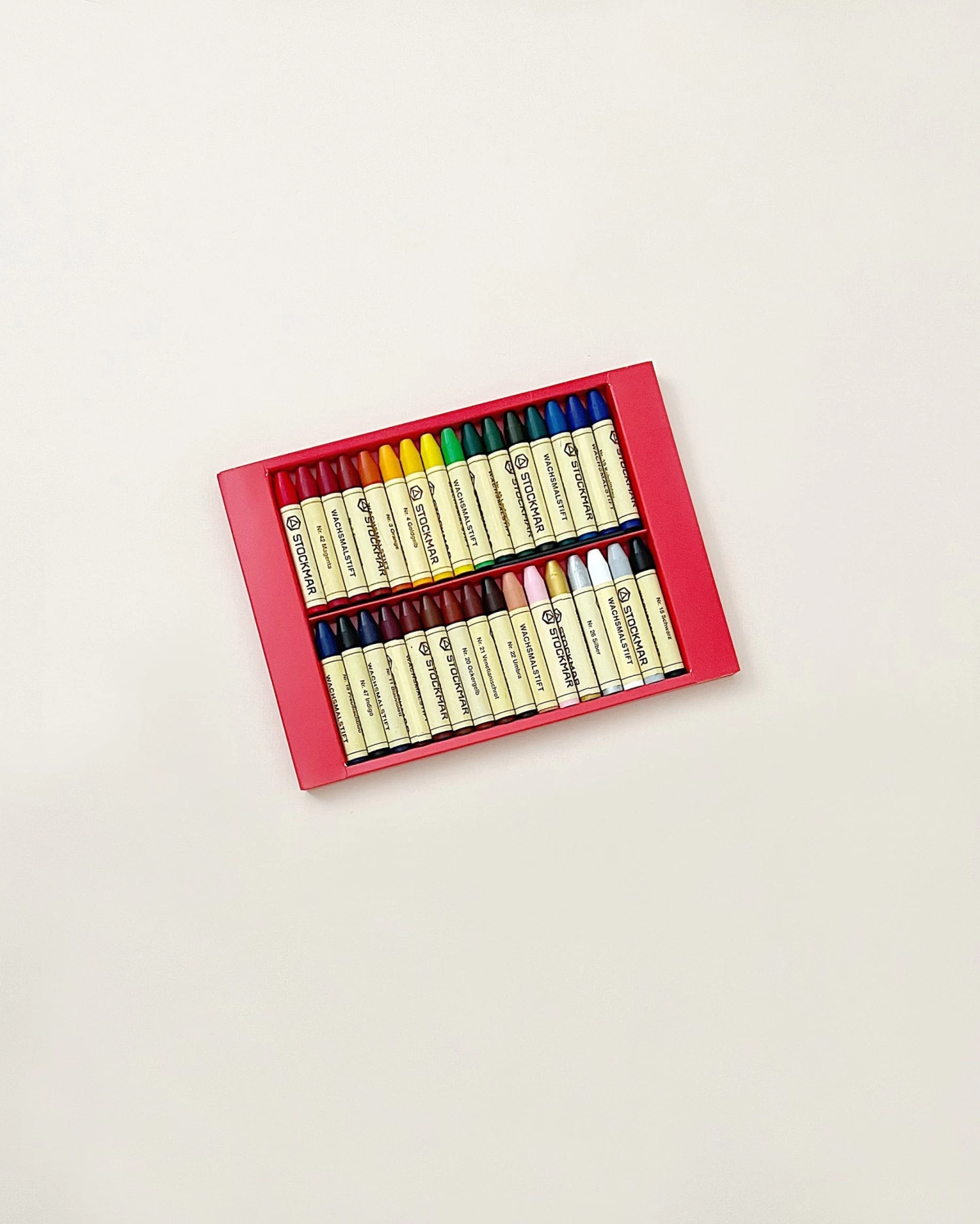 This set contains all 32 vibrant colors for years of creativity. They meet the highest educational, aesthetic and artistic demands. Elegant design with an attractive packaging and pleasant fragrance, Stockmar Wax Crayons appeal to the child’s senses. How the colors shine and how versatile they are! Whether drawing, painting, generously applying, layering, scraping, and melting colors, Stockmar Wax Crayons promise years of pure drawing pleasure. Outstanding drawing properties (no crumbling, sticking, smudging etc.) non-toxic and a sound concept for art education are what make Stockmar Wax Crayons top of the list.