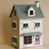 The cutest woodland cottage you ever did see. With a rose colored gabled roof, opening front doors and a removable back panel, this little house can be carried to be played with anywhere. Decorated on all sides with beautiful wild flowers, and two cut out windows which allow the flower stems to run through creating a magical meadow look. The back panel lies flat to become a garden, on to which can be placed a pretty swing, 2 flowers, and a toadstool. We have included a wood burning stove, flower table, 2 button stools, a toadstool lamp and a side table. Tuck Bud up in his leafy fabric bed, or push Corny on the swing while mummy Flora and Daddy Joey watch the stars go by.
