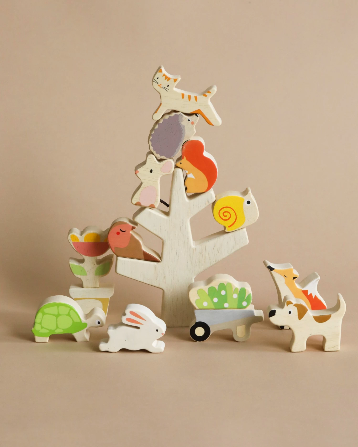 Hang out with all the garden friends and try to stack them all up on the tree without falling down! The Stacking Garden Friends is made from solid wood and painted with cute garden motifs, it also comes with a printed drawstring bag for easy storage. Encourage logical thinking and inspire imaginative play and fine motor skills.