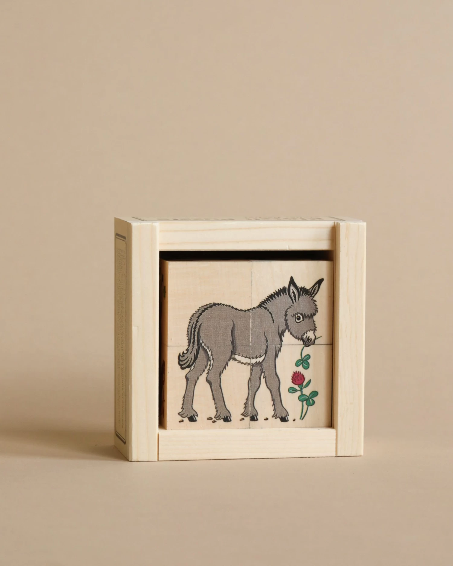 This darling wooden block puzzle is crafted from locally and sustainably harvested trees in Switzerland.Â